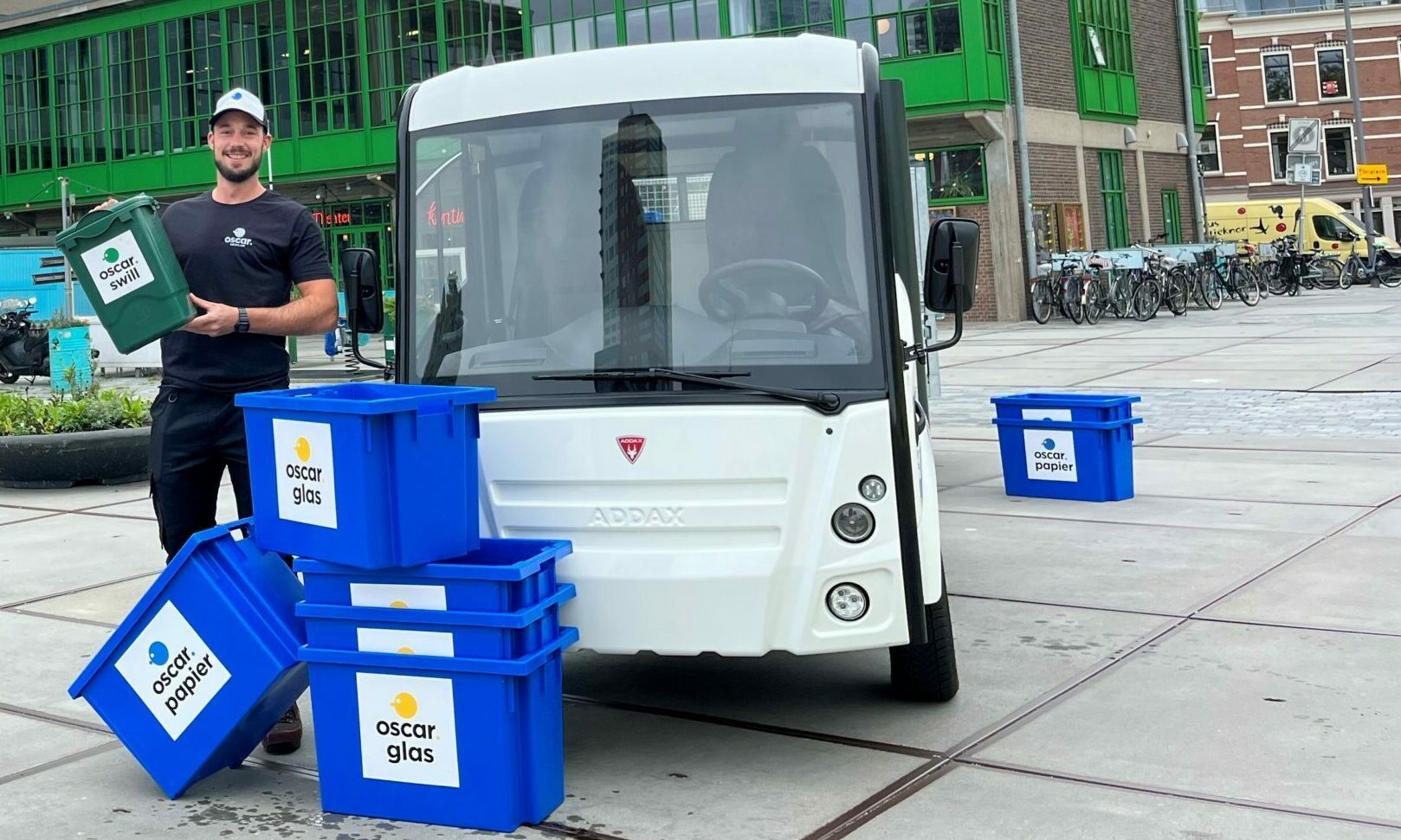 Oscar Circulair maakt steden afvalvrij! Dat doet Oscar door te zorgen voor centrale inzameling van bedrijfsafval in drukke gebieden in de stad, dichtbij de bedrijven zelf. Oscar zorgt ervoor dat hoogwaardige grondstoffen uit het afval worden gehaald, er minder restafval overblijft en hierdoor de grote afvalverwerkers minder vaak naar deze gebieden hoeven te komen. www.oscarcirculair.nl
