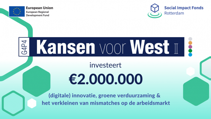 Social Impact Fonds Rotterdam ontvangt een investering van 1 mln van het Europese programma Kansen voor West III, voor het stimuleren en verduurzamen van de sociale Rotterdamse markteconomie.