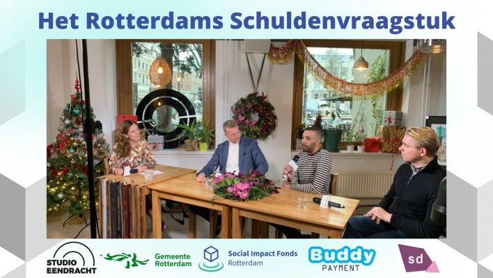 Als huurder deden wij uiteraard mee met deze mooie actie en hebben we een uur lang gesproken over de schuldenproblematiek in Rotterdam. De problematiek is groter dan gemeente en partners in de stad nu aankunnen. De programmamanager schulden van de gemeente, Ronald Kool, is zich daarvan bewust en is op zoek naar manieren om met partners nog meer Rotterdammers te kunnen helpen. Tevens waren twee sociale ondernemingen aanwezig: Jamal Oulel van Social Debt en Camiel Kuiper van Buddy Payment. Beiden zijn op een geheel andere manier geconfronteerd met de perverse effecten van de huidige schuldhulpmarkt en het beperkte antwoord dat we momenteel als maatschappij hebben voor mensen met schulden. Beiden zijn sterk gemotiveerd om via hun tech expertise een ondersteunende oplossing te bieden. Het werd een innemend gesprek van een half uur, waaruit bleek dat we met elkaar ervoor kunnen zorgen dat we meer Rotterdammers kunnen helpen en dat Tech veel mogelijkheden biedt voor additionele schuldhulp. Het na-luisteren zeker waard!